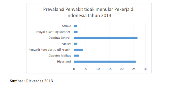 Beberapa literatur lain mengidentifikasi hubungan positif gangguan kesehatan terhadap hilangnya waktu produktif yang diukur berdasarkan ketidakhadiran dan kehadiran pekerja. Di Indonesia terdapat tujuh penyakit tidak menular tertinggi yang akan mempengaruhi produktivitas kerja menurut data Riskesdas 2013 yaitu hipertensi, diabetes melitus, penyakit paru obstruktif kronik, kanker, obesitas, penyakit jantung koroner, dan stroke.